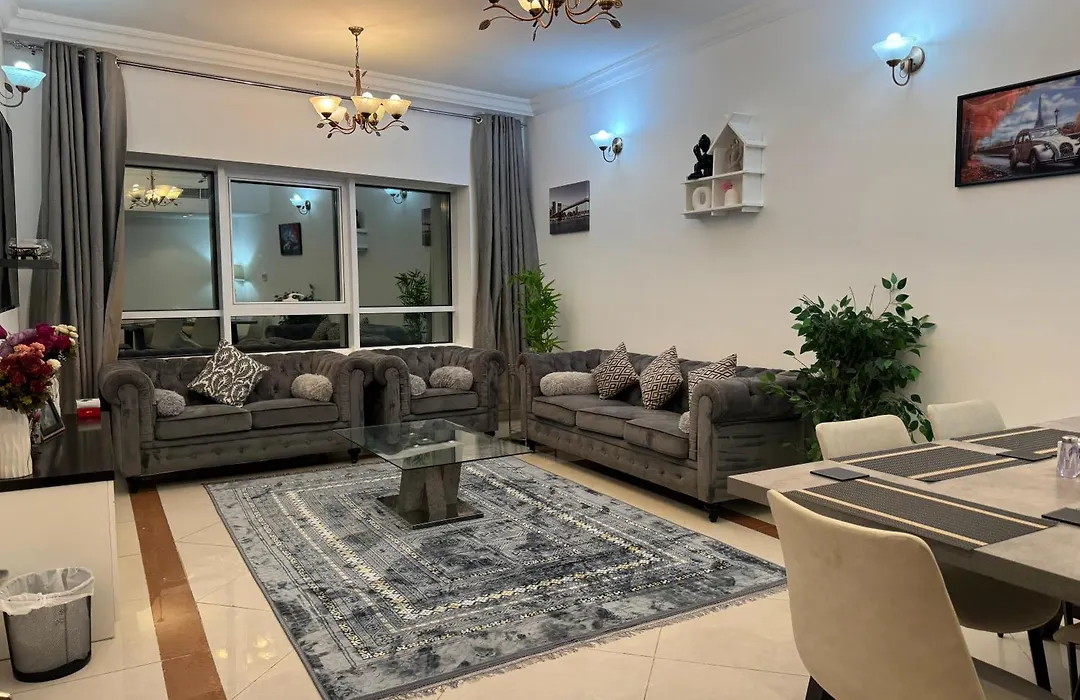 Staying at the spacious Mamzar Views Apartment, guests have access to a seating area equipped with climate control. To ensure your comfort, an additional toilet are provided at the apartment. Hair dryers, complimentary toiletries, and bath sheets are also included in the bathroom.